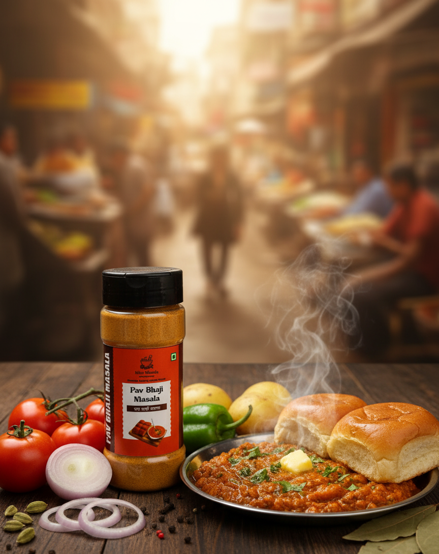 Bring the taste of Mumbai’s street food home with our Pav Bhaji Masala – a flavorful blend of handpicked spices that gives your bhaji a bold, spicy, and aromatic punch. Perfectly balanced for that iconic pav bhaji taste.